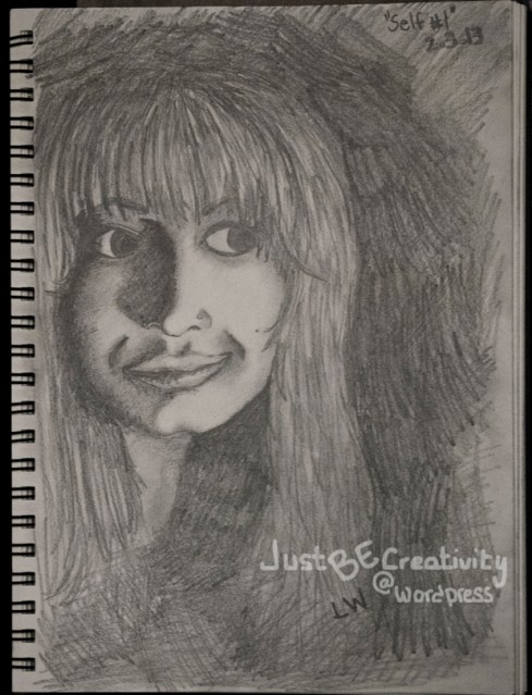 Now that I’ve completed the drawing and compared it to the original photograph, I’ve realized that I made a few changes. The most interesting perhaps, from a psychological stance, is that I turned my gaze upward whereas in the photograph I am looking slightly downward. How is that for subconscious expression — I guess you can infer that I am in a good mood!